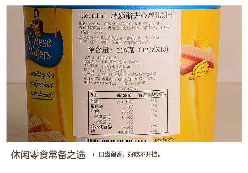 產(chǎn)品描述 推薦產(chǎn)品 HO.mimi牌飛行小圓餅(混合口味) Ho.mimi牌裹衣花生-160g 奶酪夾心餅干-360g HO.mimi牌梳打餅干-268g HO.mimi牌蘇打餅干-500g HO.mimi牌消化餅干(400g/罐)