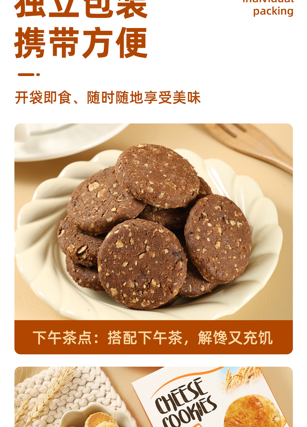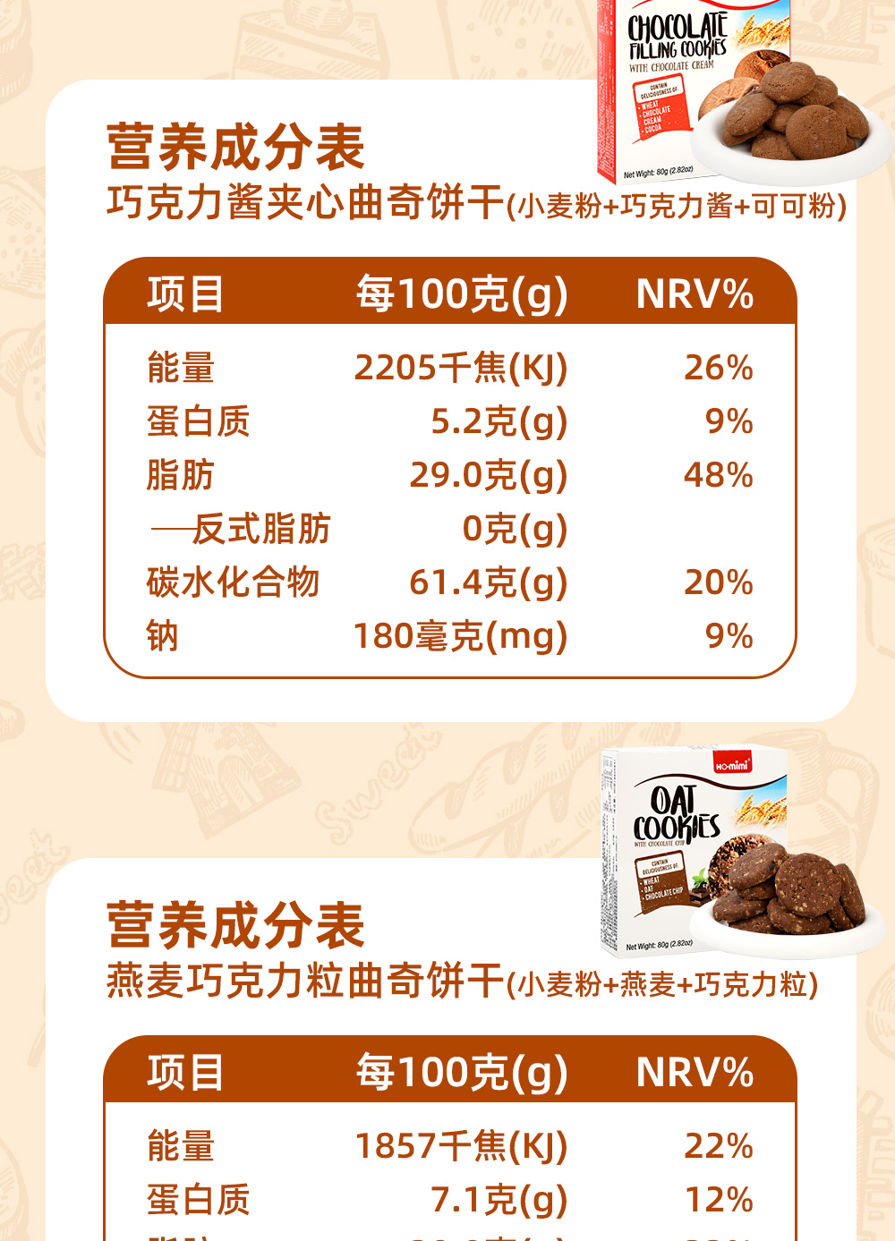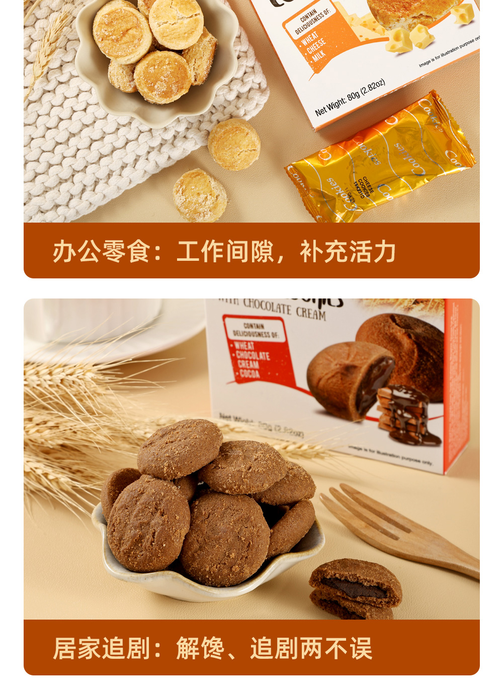 巧克力醬夾心曲奇餅干、干酪曲奇餅干、燕麥杏仁曲奇餅干、燕麥巧克力粒曲奇餅干